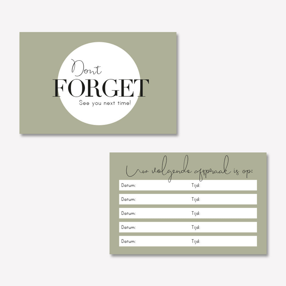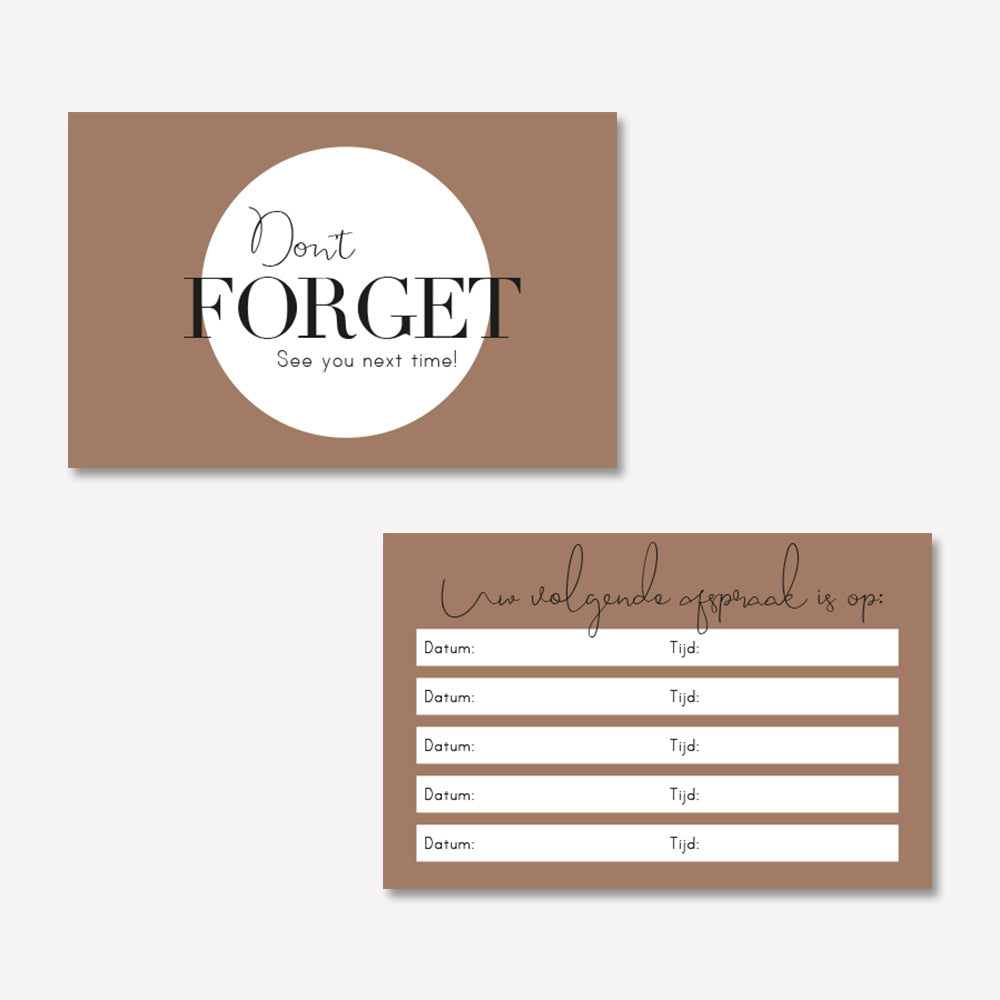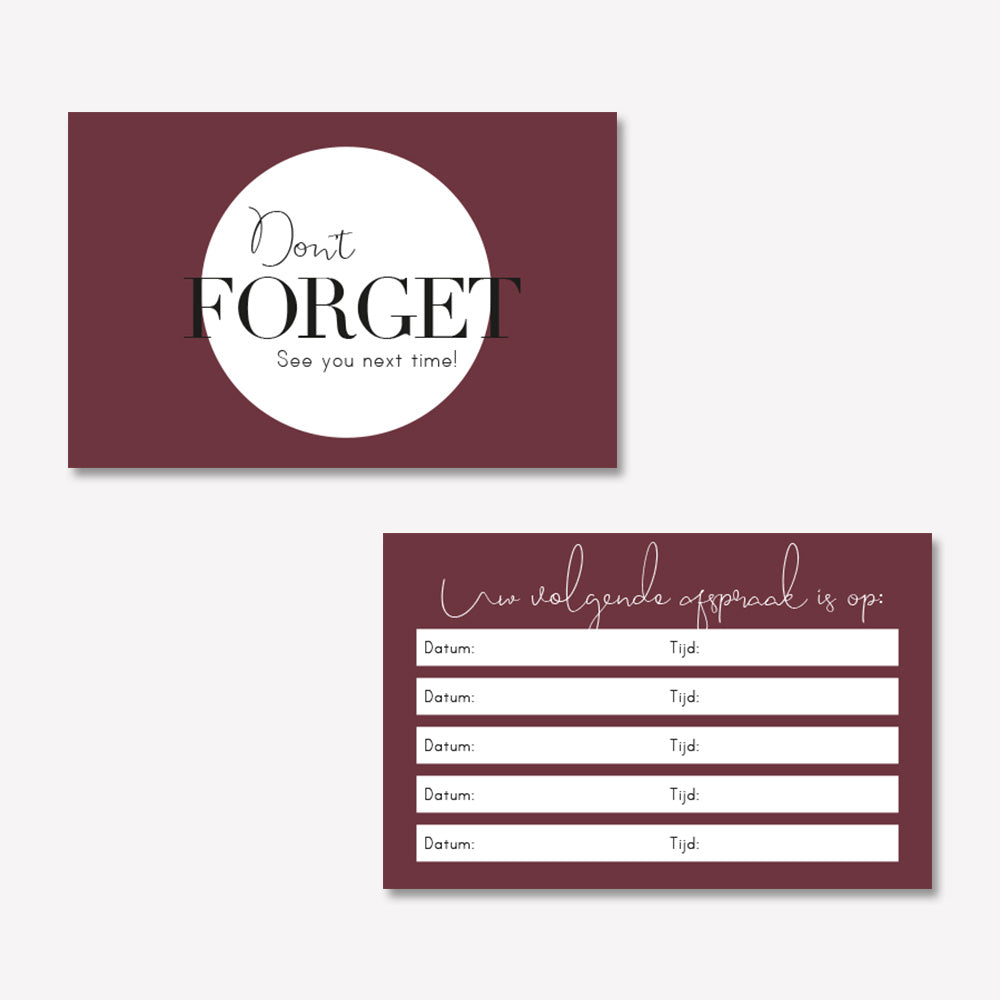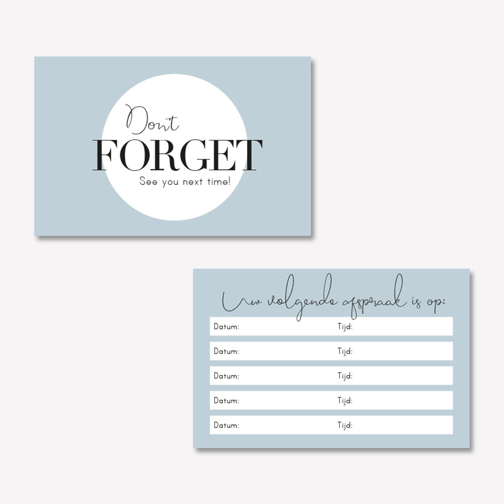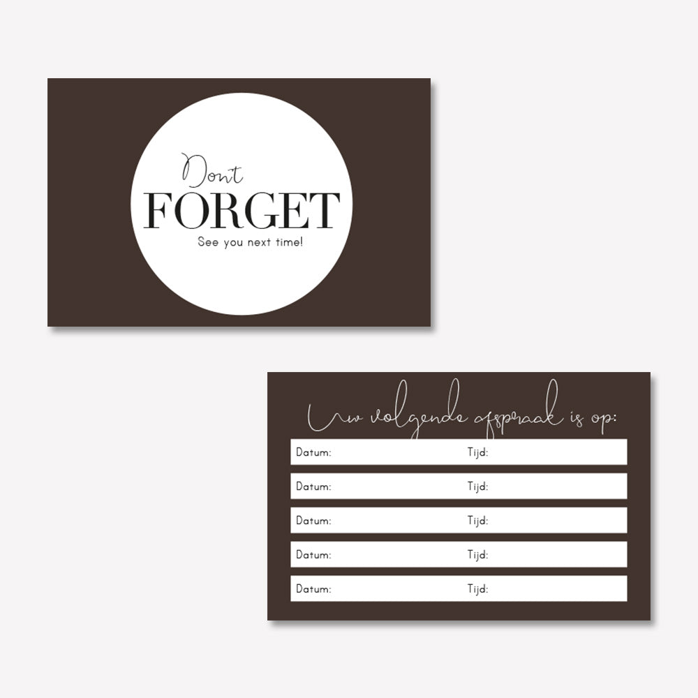 Zorg dat gemaakte afspraken niet meer vergeten worden met je eigen afsprakenkaartjes.